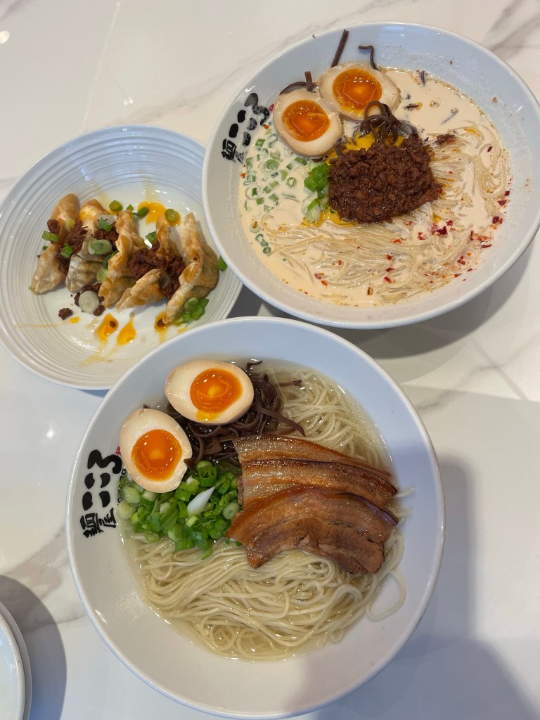 My husband and I decided to go for ramen this time and we each ordered a different kind. For tapas we got the gyoza, then tonkotsu ramen for myself with clear broth and spicy kokoro ramen with creamy broth for the hubs. Tonkotsu is pork broth and it comes with chasu which are thin pork slices. Vegan ramen is also available if pork is not your thing.