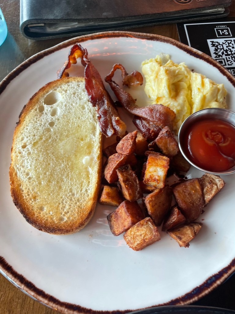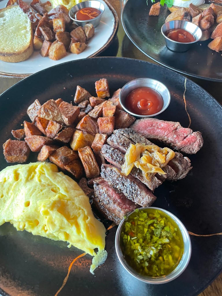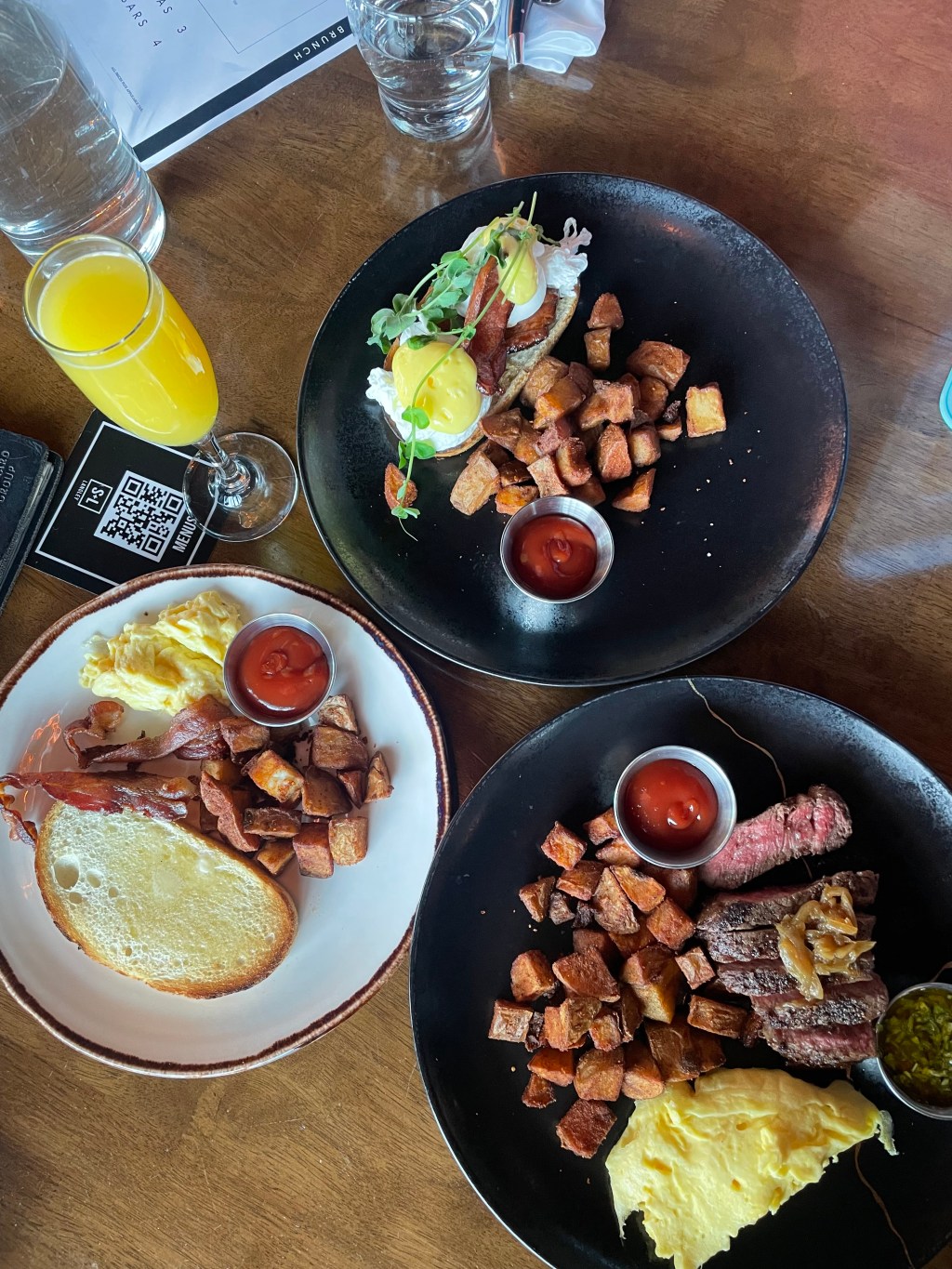 We went on a Sunday and we ordered: O.G. steak & eggs, eggs benedict, $3 caesar, $4 mimosa and my little one’s meal was FREE. The portions were still a good size and the cocktails did not taste watered down. We truly had a happy day with our bellies full and feeling like we got a good deal. Definitely, we’ll be back to try out more of their brunch offerings.