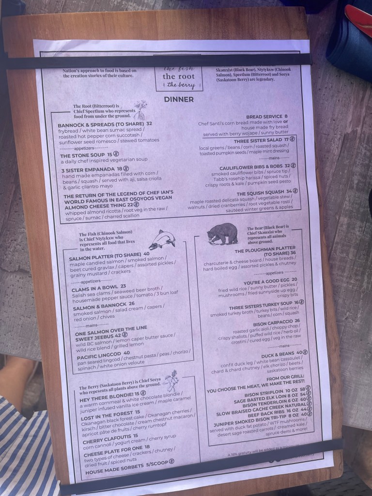 The NK’MIP Cellars are also onsite and it has amazing views of the vineyard, mountain and the lake. The resort has one proper restaurant The Bear, The Fish, The Root & The Berry, which I talk about below and other grab-and-go type of place by the kids’ pool.