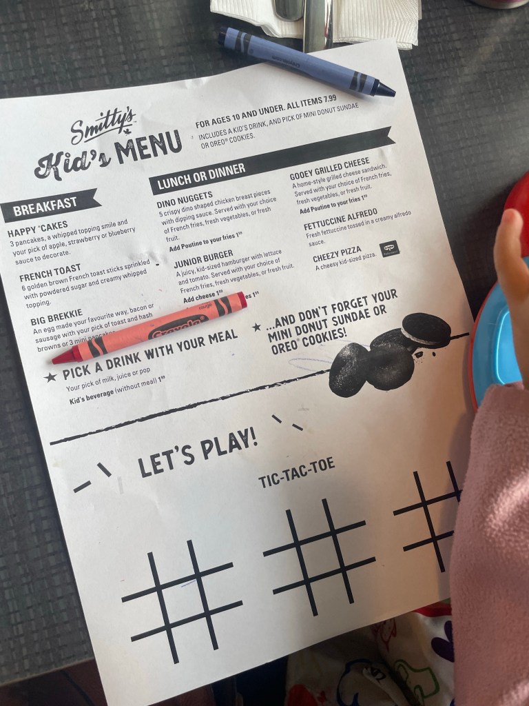 Another place we visited was Smitty’s which serves brunch meals and is very popular and busy. We went on a Sunday at 11am and we were waiting for our food for at least 40 minutes. Luckily, they are very accommodating to little ones and have toys and crayons for kids’ entertainment (and a pot of coffee for the parents).